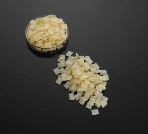 此款黃色片狀顆粒適用于油墨和表面鋪膜的紙箱復(fù)合,粘合強度好,耐溫效果佳